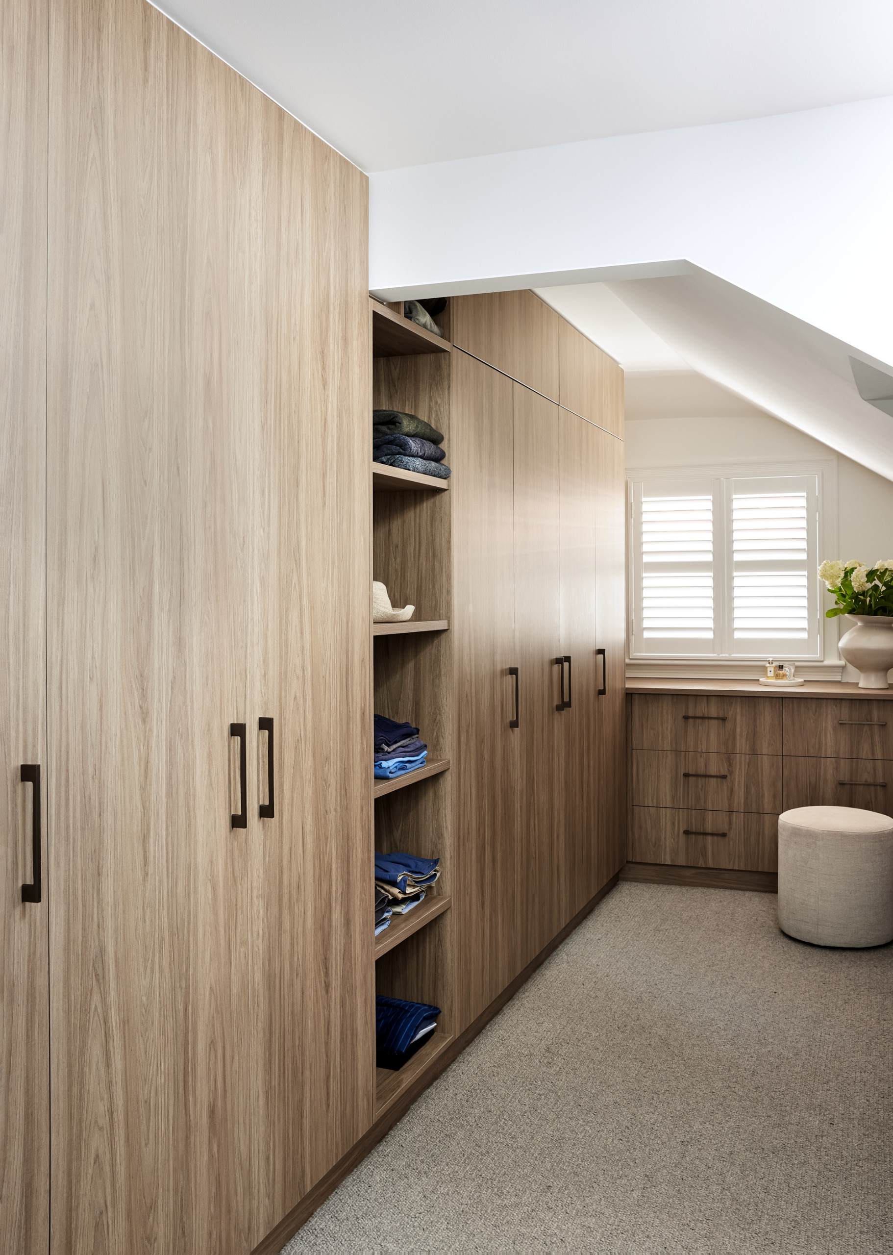 Unused storage space under the roof was transformed into a new walk-in wardrobe and dressing area that connects with the main bedroom.