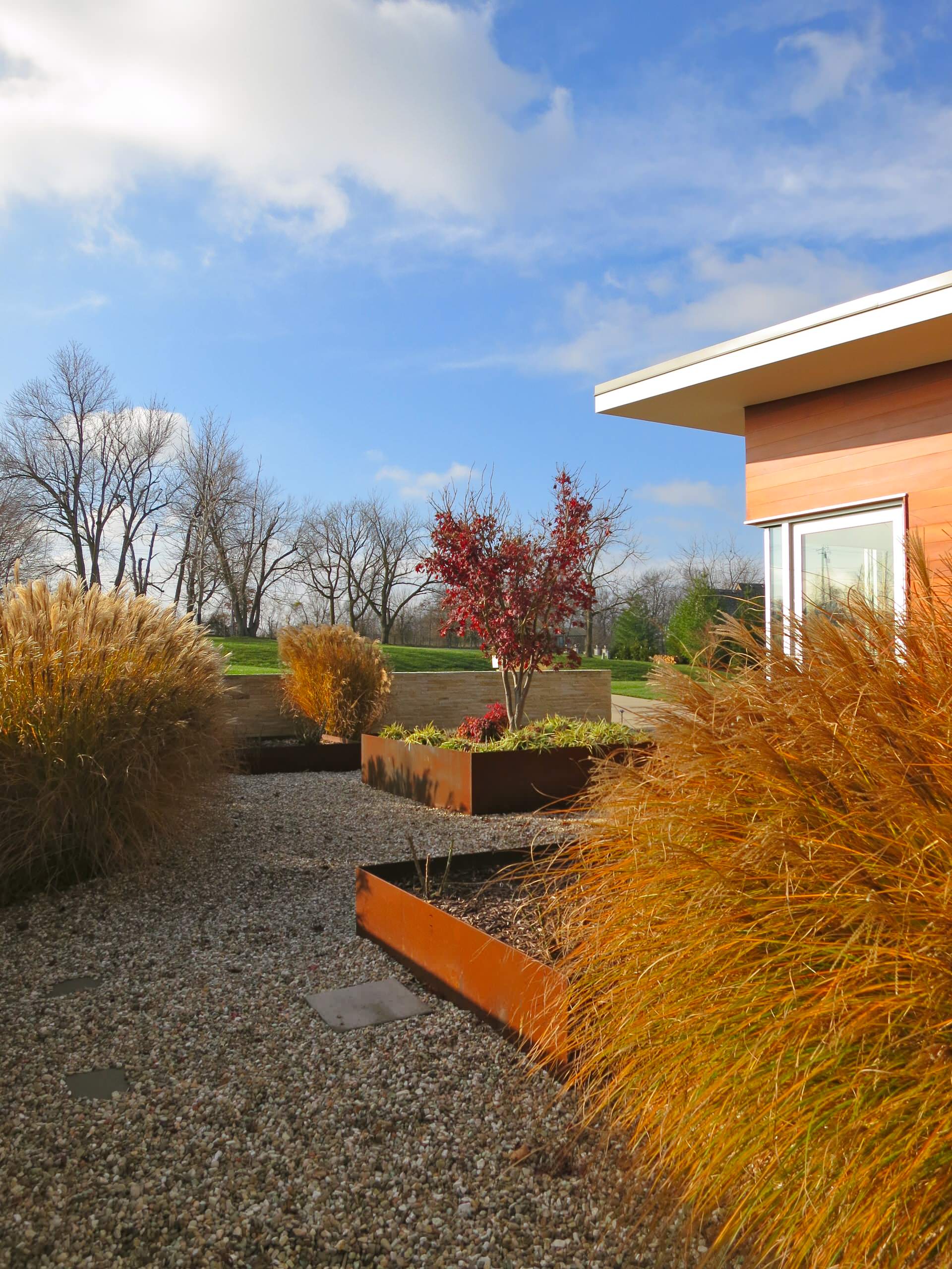 Corten steel rusts to form its own protective coating, slowing the rate of future corrosion. Corten steel planters, rusted to a lovely orange hue, are not only attractive in their own right, but, used with the right plants, can add to the autumnal colour and help reflect the light.