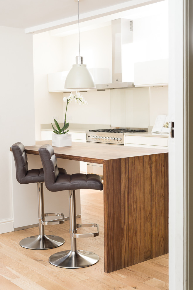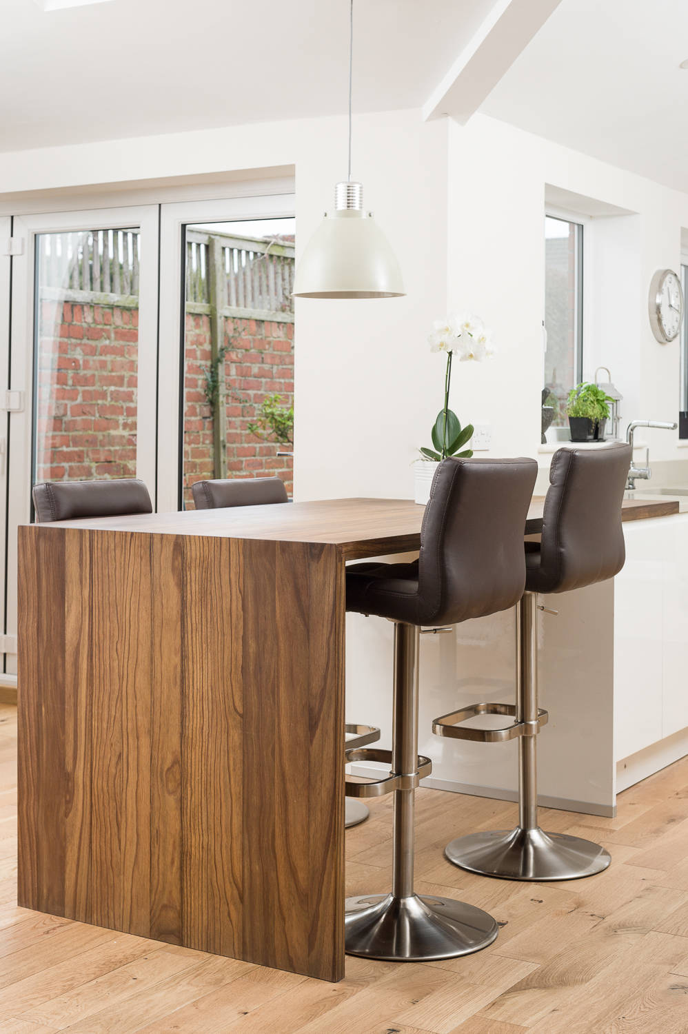 John says he can’t take credit for the grey pendant light and comfy cushioned bar stools, which were all sourced by the client. ‘We talked about the colour and decided on an earthy brown tone,’ he says.