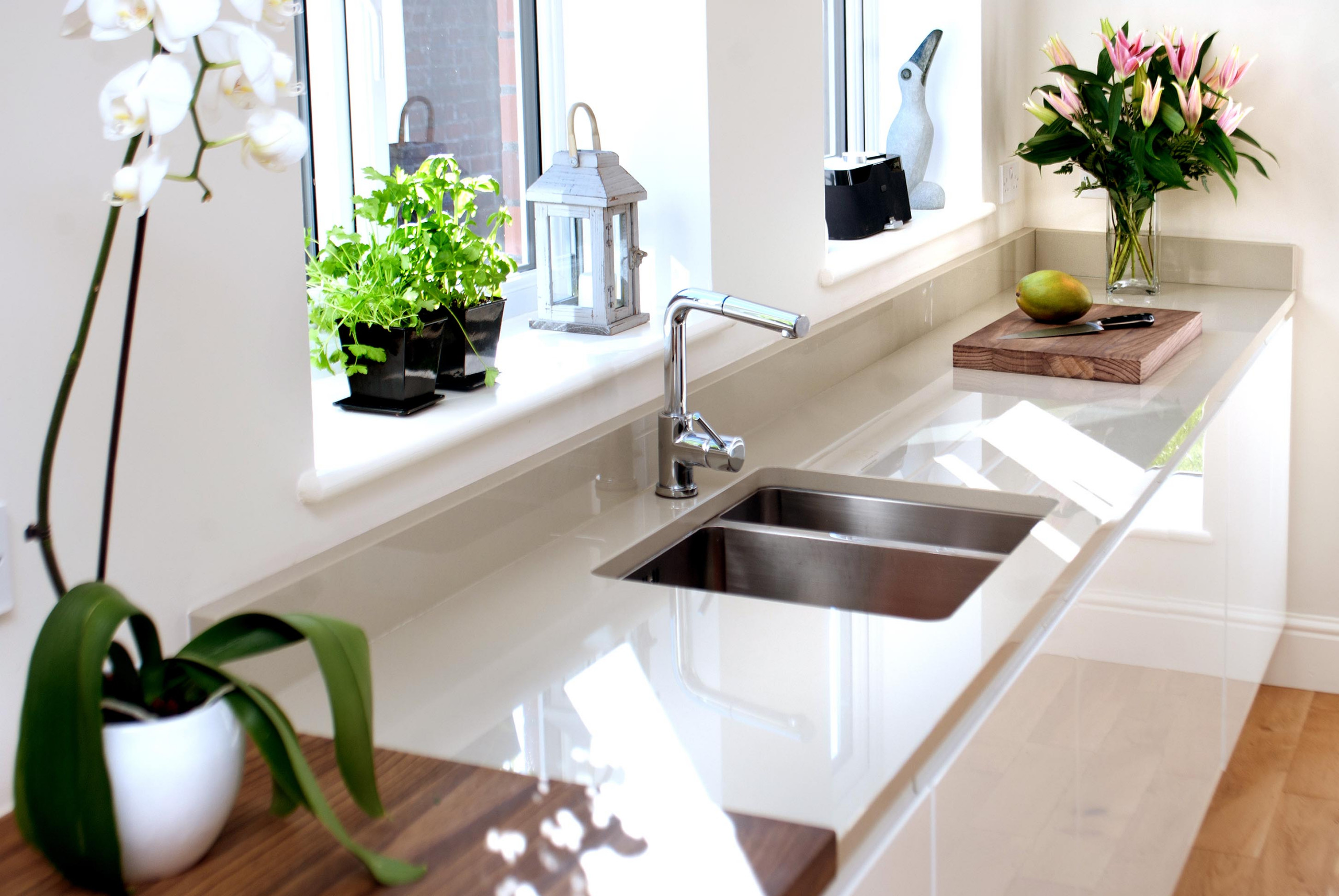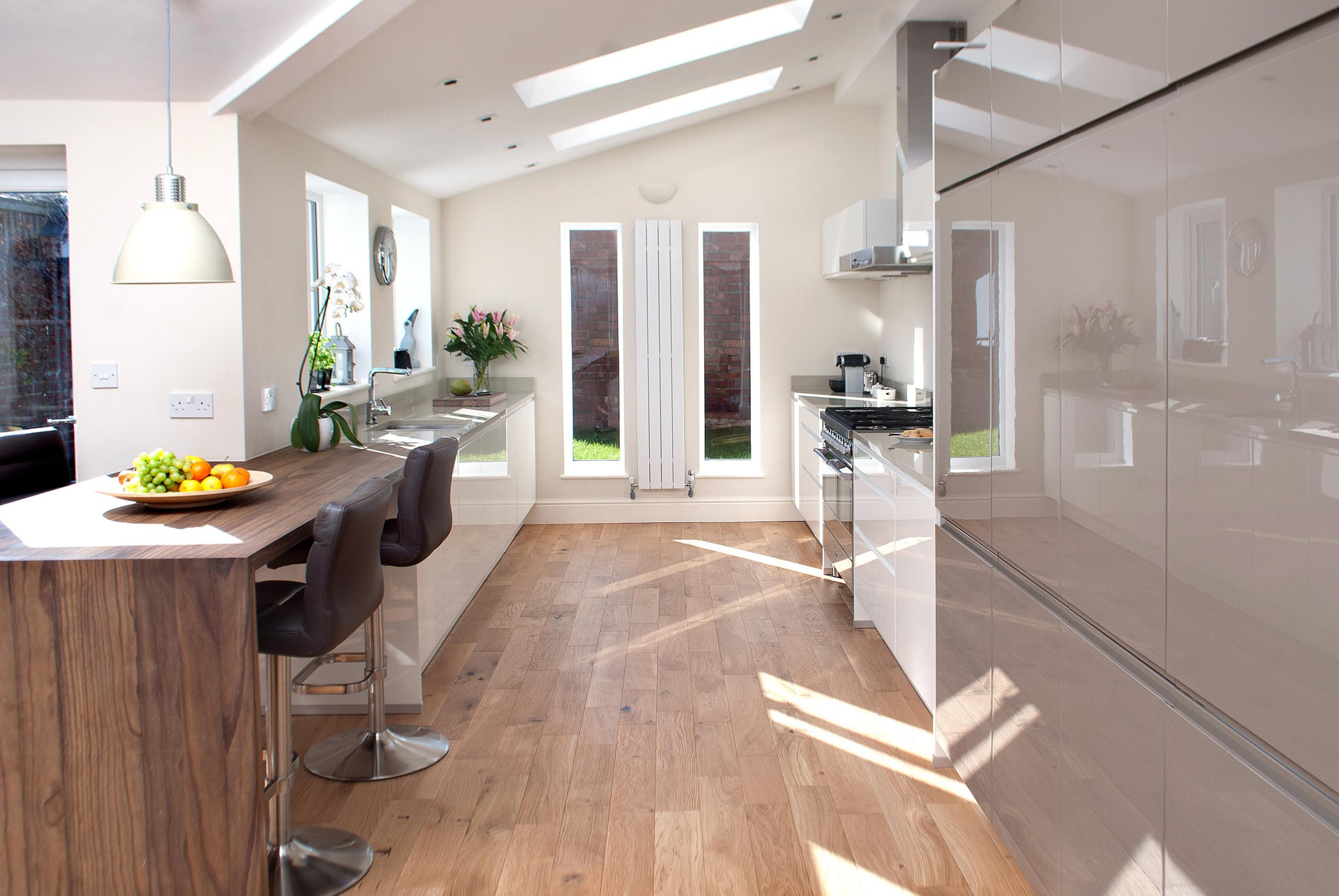 Abundant natural light and glossy surfaces teamed with tactile timber give this kitchen an airy, welcoming mood