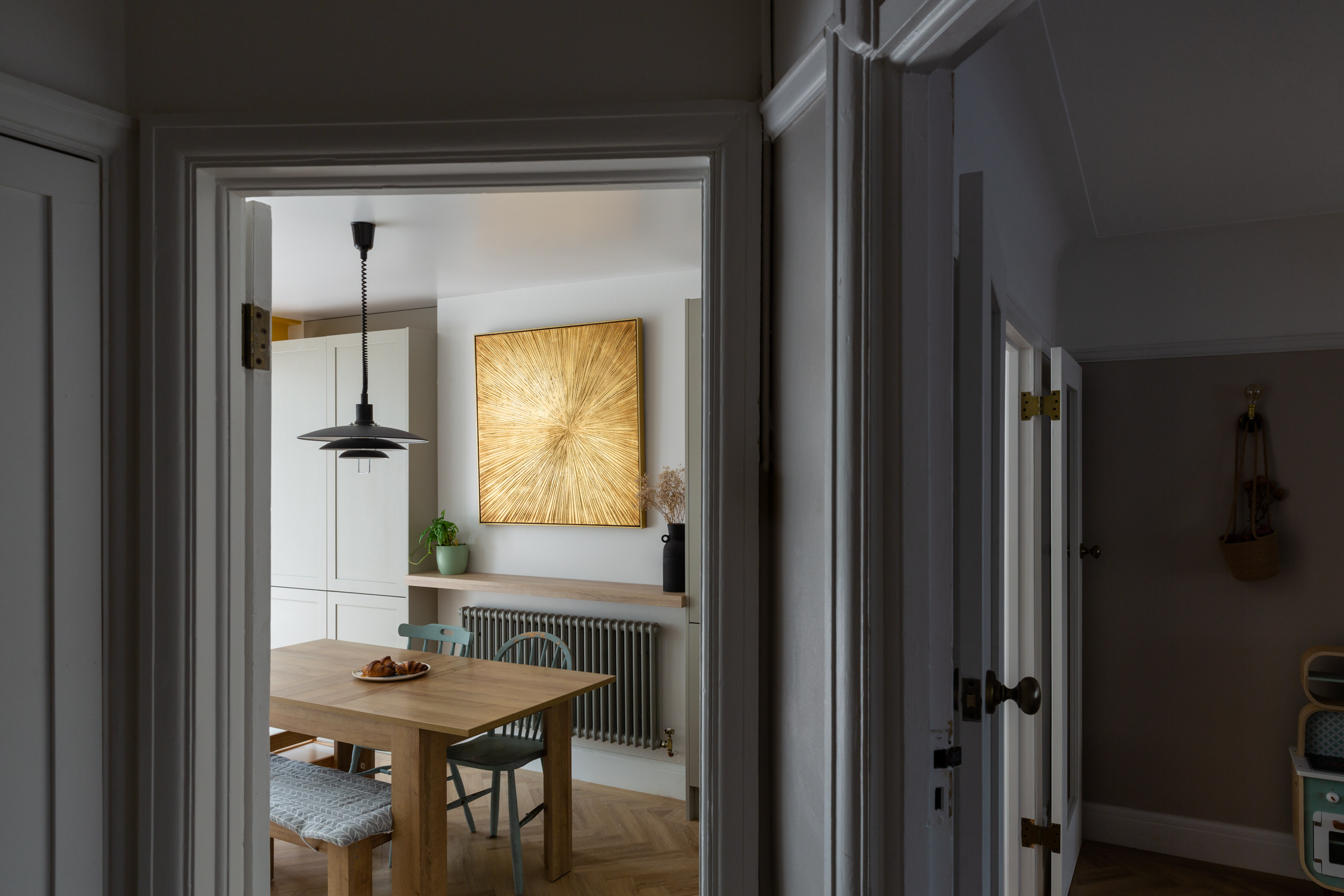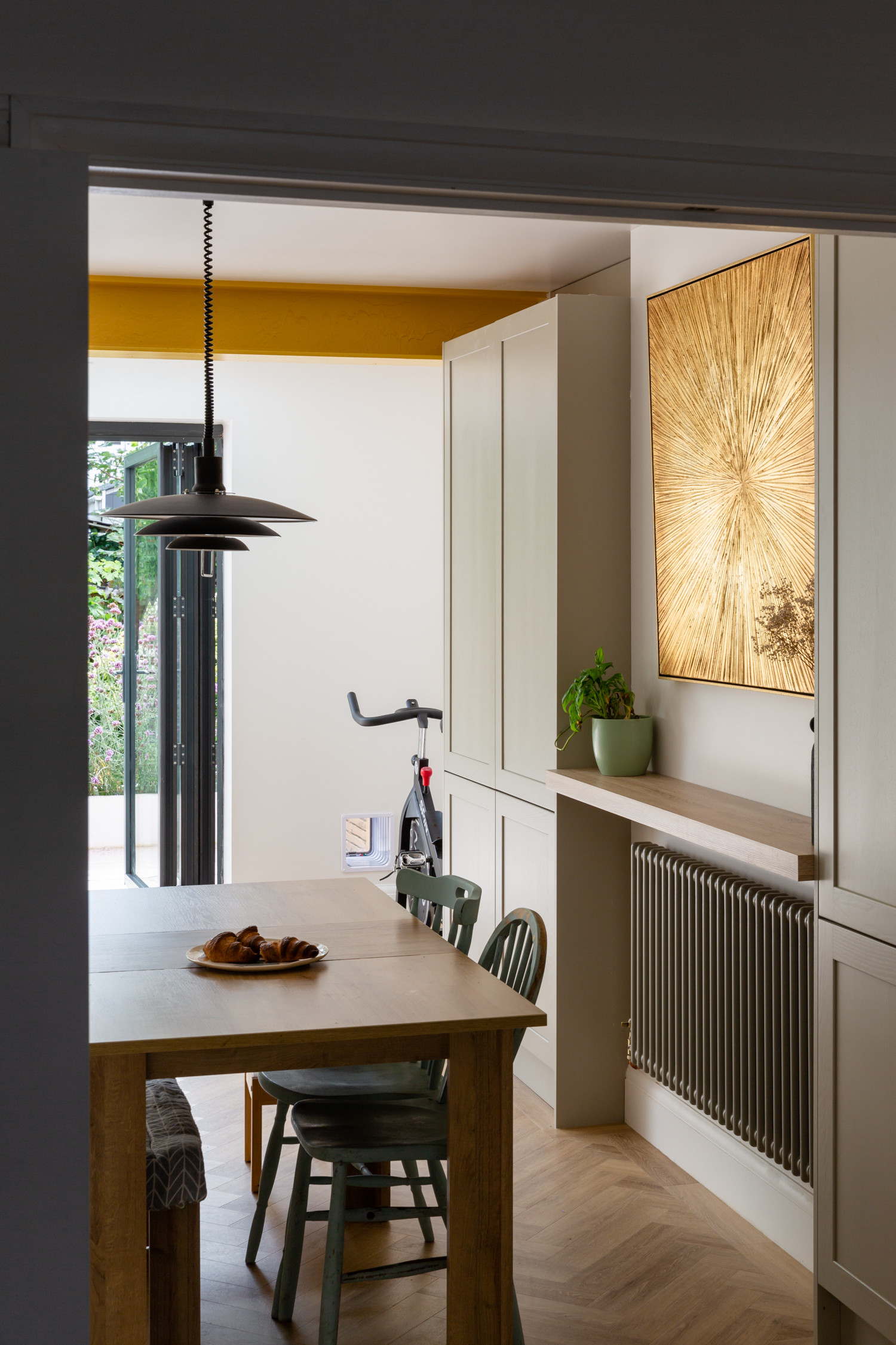 The dining area was previously a catch-all zone. “We used to teach yoga in the dining room during lockdown and there were no radiators or anything, so it was properly in need of love,” John says.