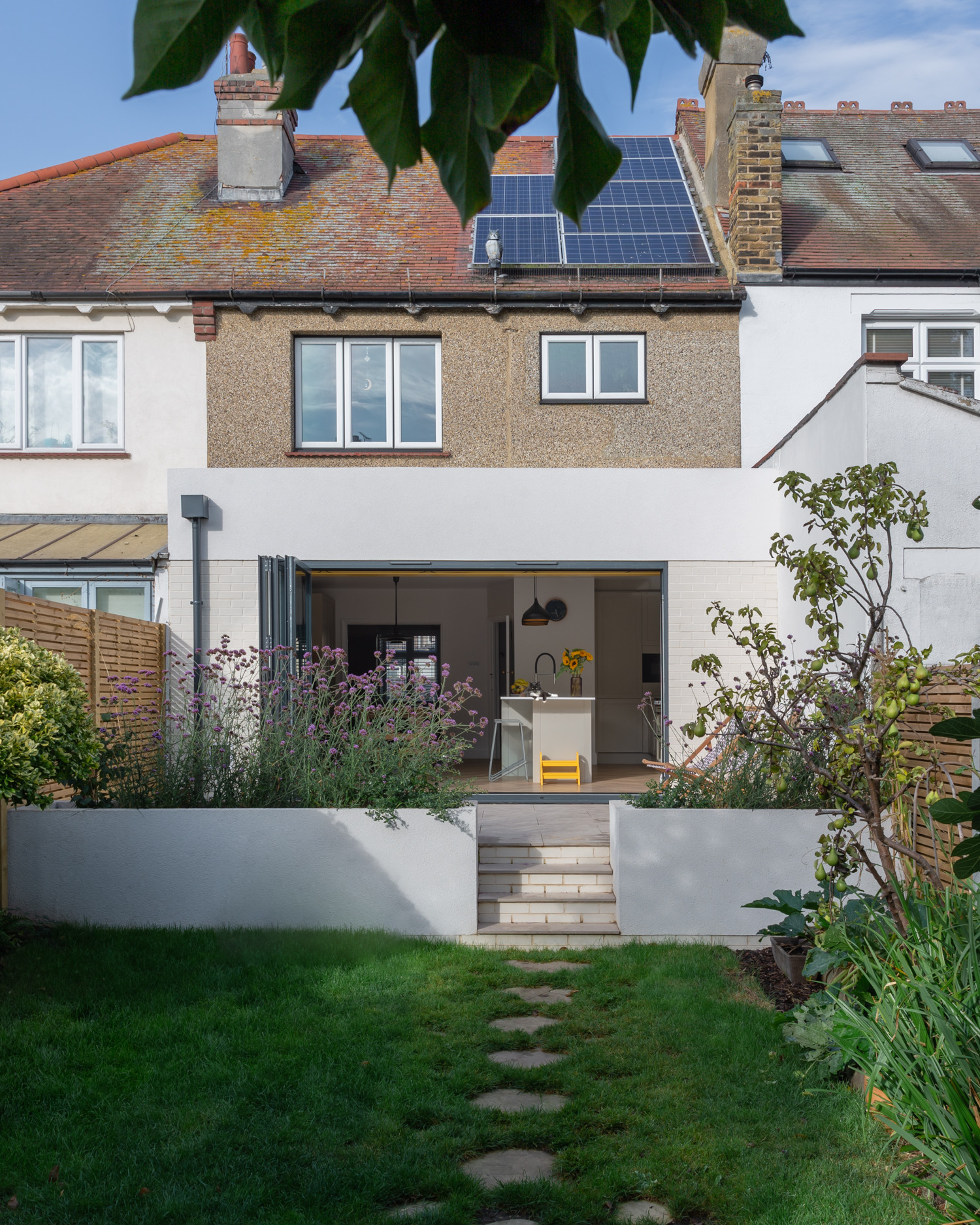 Combining the three rooms has given the family a sociable, inside-outside space. The new extension sits on the footprint of the old conservatory. This was partly to preserve the garden and partly to reduce costs.