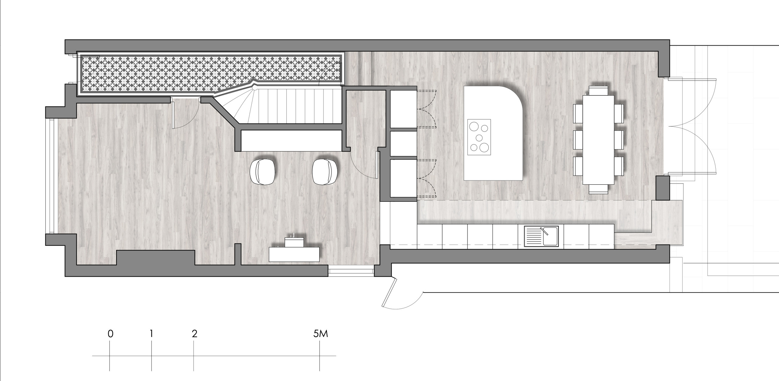 The initial brief from the owners was to open up the ground floor, bring in natural light and connect the inside with the lovely garden.