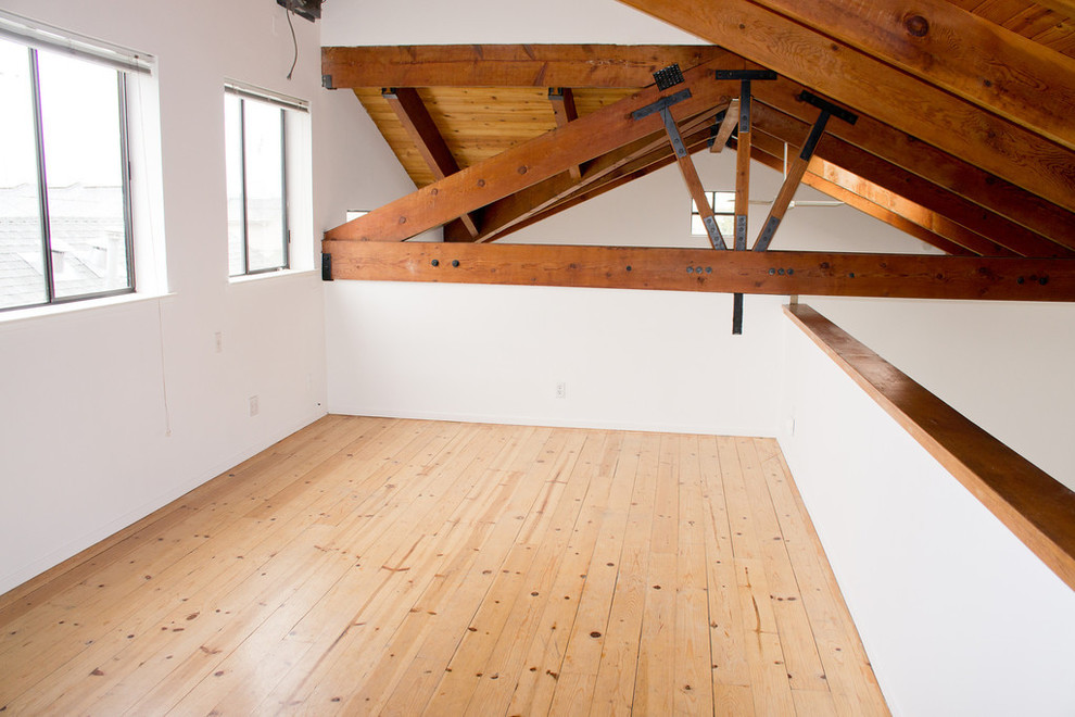 BEFORE: The floors were replaced and a guest bathroom and closet (for the washer and dryer) were added to an existing mezzanine.