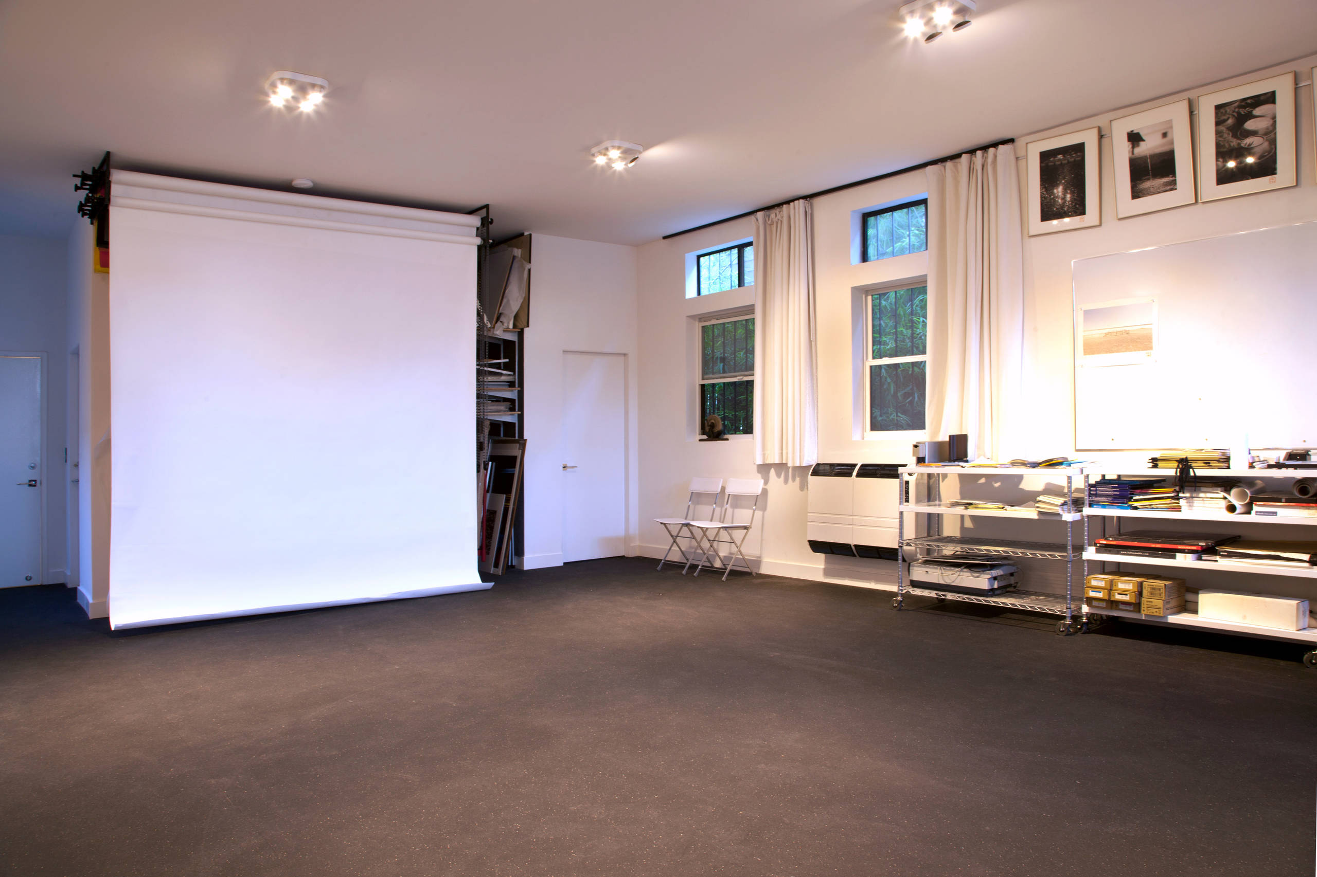 Sertorio’s photography studio is located on the ground floor for easy loading and unloading. The rubber floors are made from recycled tires, so they are not only durable but also shock absorbent.