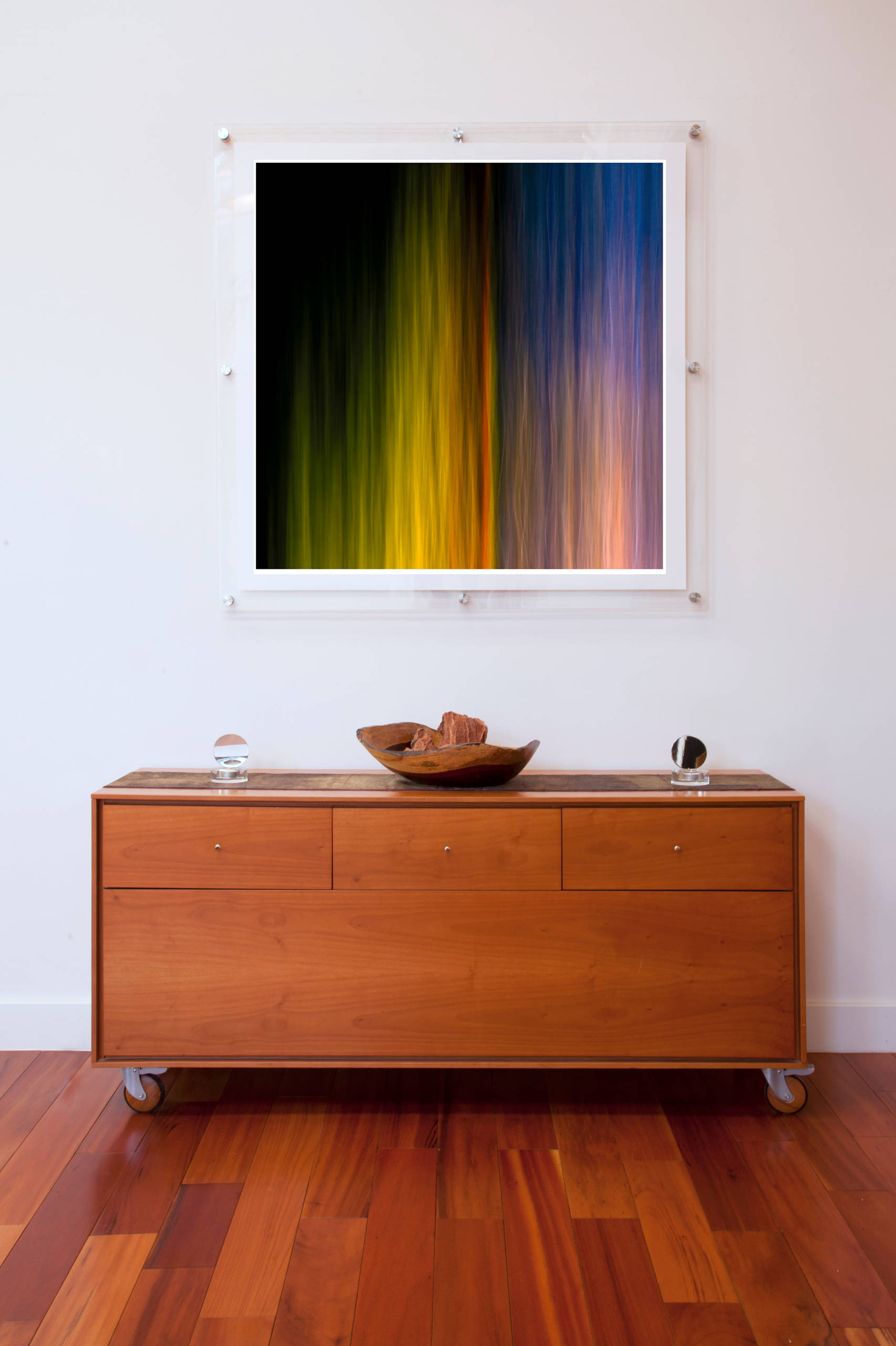 The sideboard is a flea market find, while the printed photograph is another of Sertorio’s original images.
