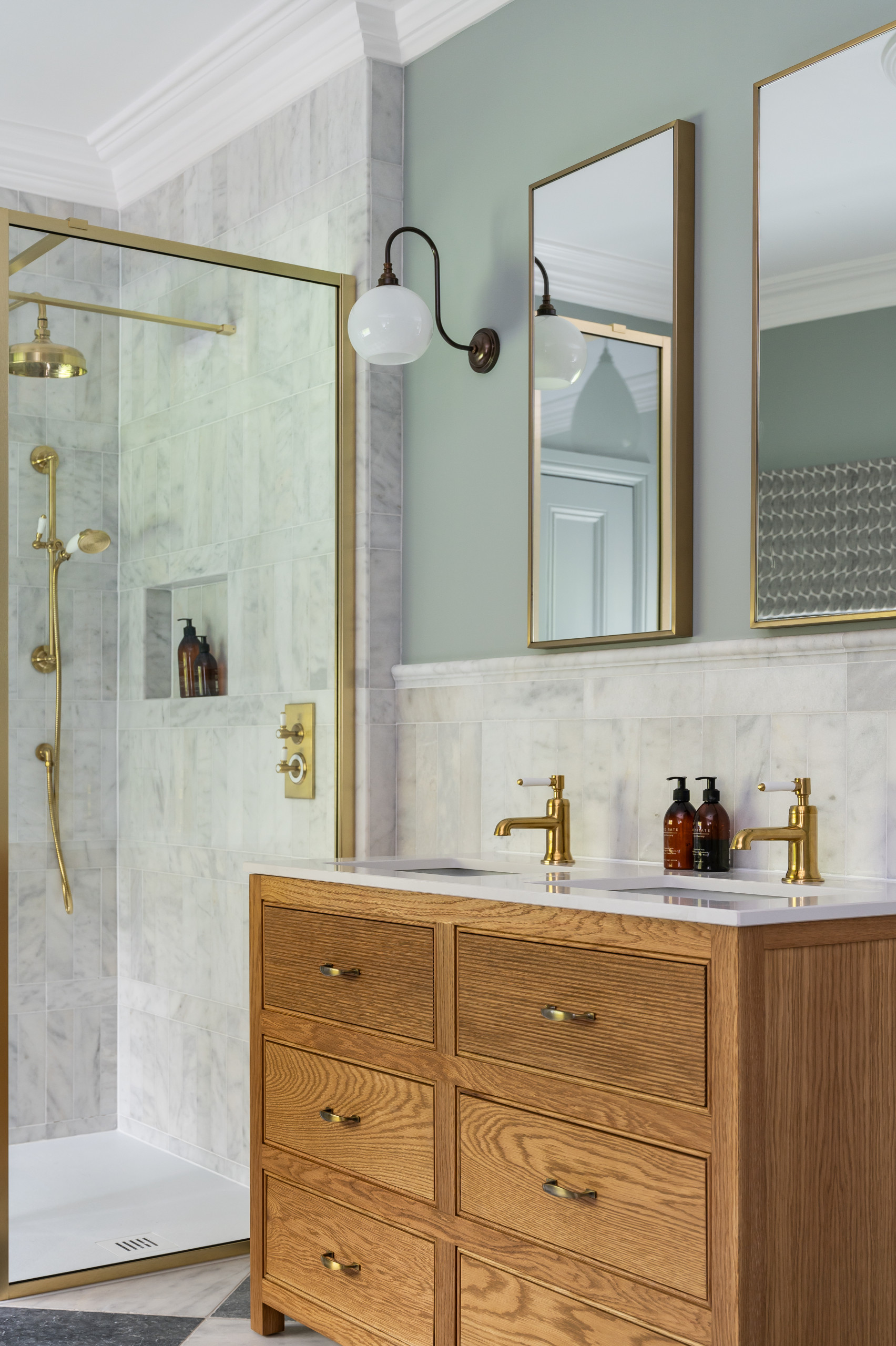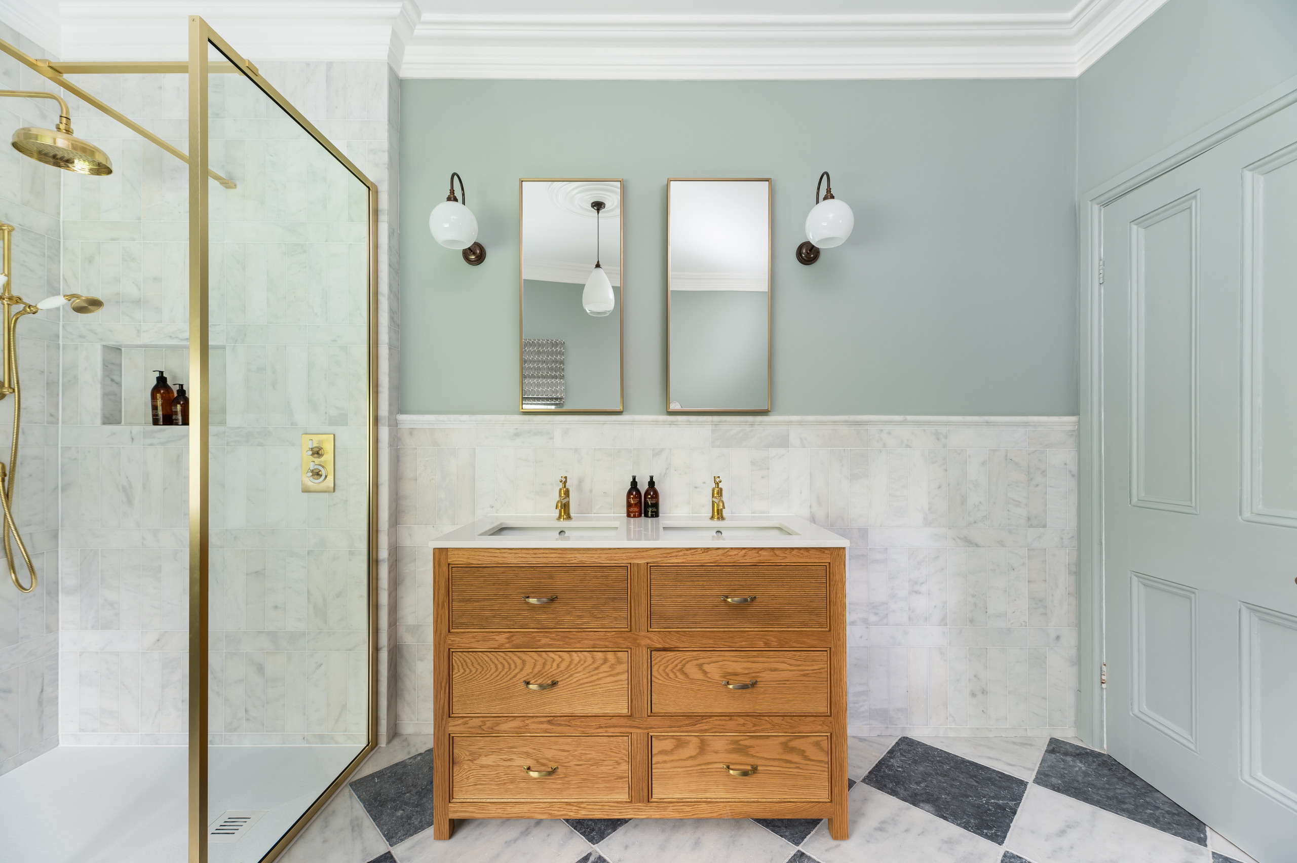 Hiring an interior designer to work on their bathroom was a no-brainer for the owners of this house in Yorkshire. They’d inherited an awkward layout and unnecessarily extensive tiling and needed someone with a skilled design eye to work out how to arrange all the sanitaryware and bring warmth and a sense of the home’s heritage into the decor.