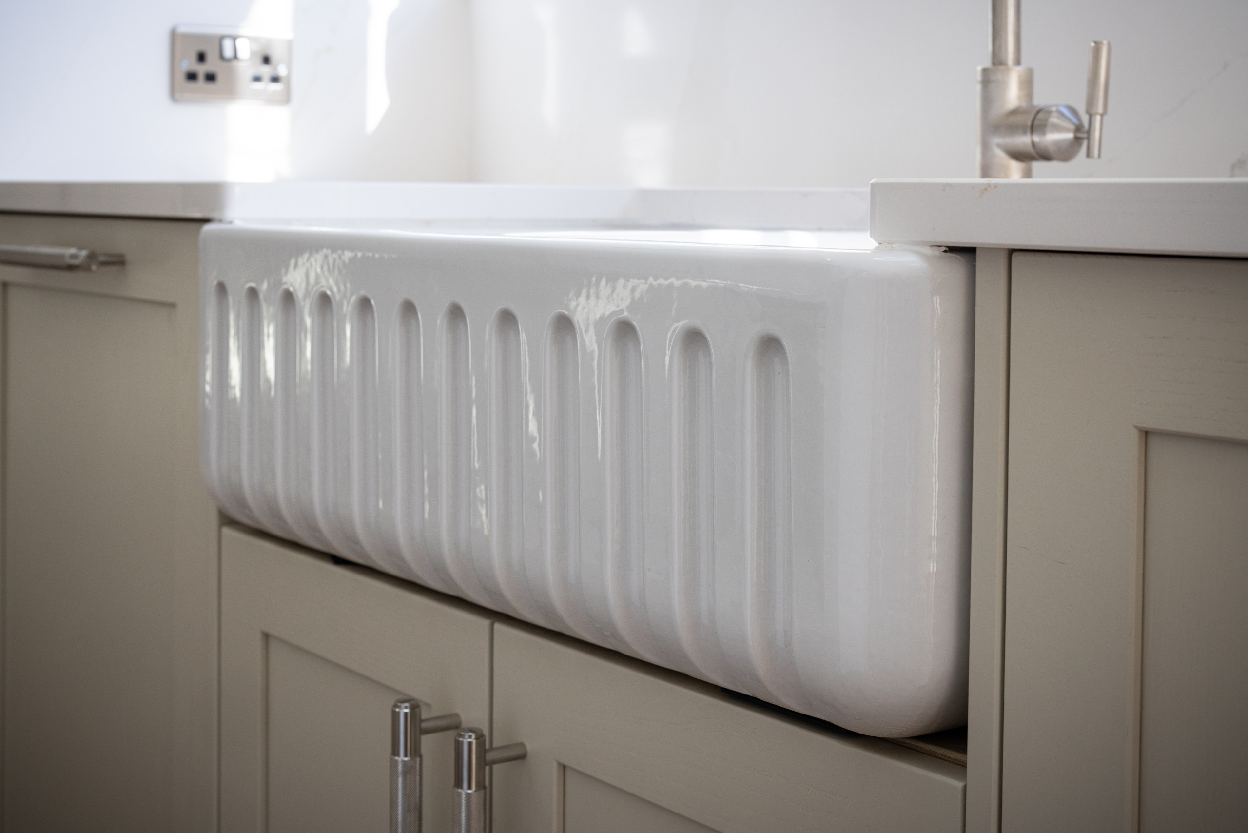Andrea chose a butler’s sink for the centre of this cabinet run. “I wanted something that felt high-quality, robust and timeless,” she says. “A butler’s sink does it.”