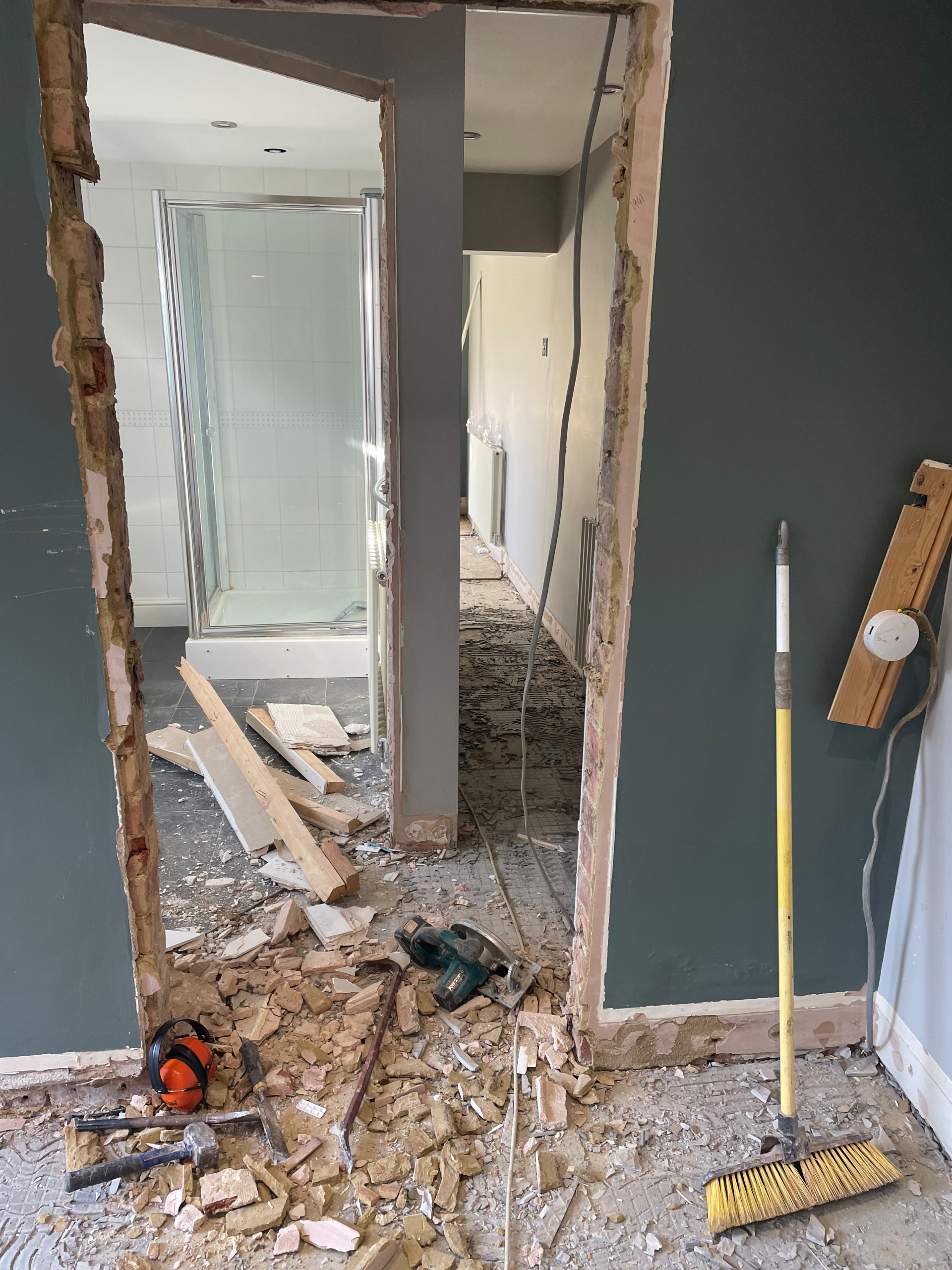 They were happy to lose it, as they have a shower room upstairs and their two sons are grown-up and no longer live at home. This work-in-progress shot shows it being demolished.