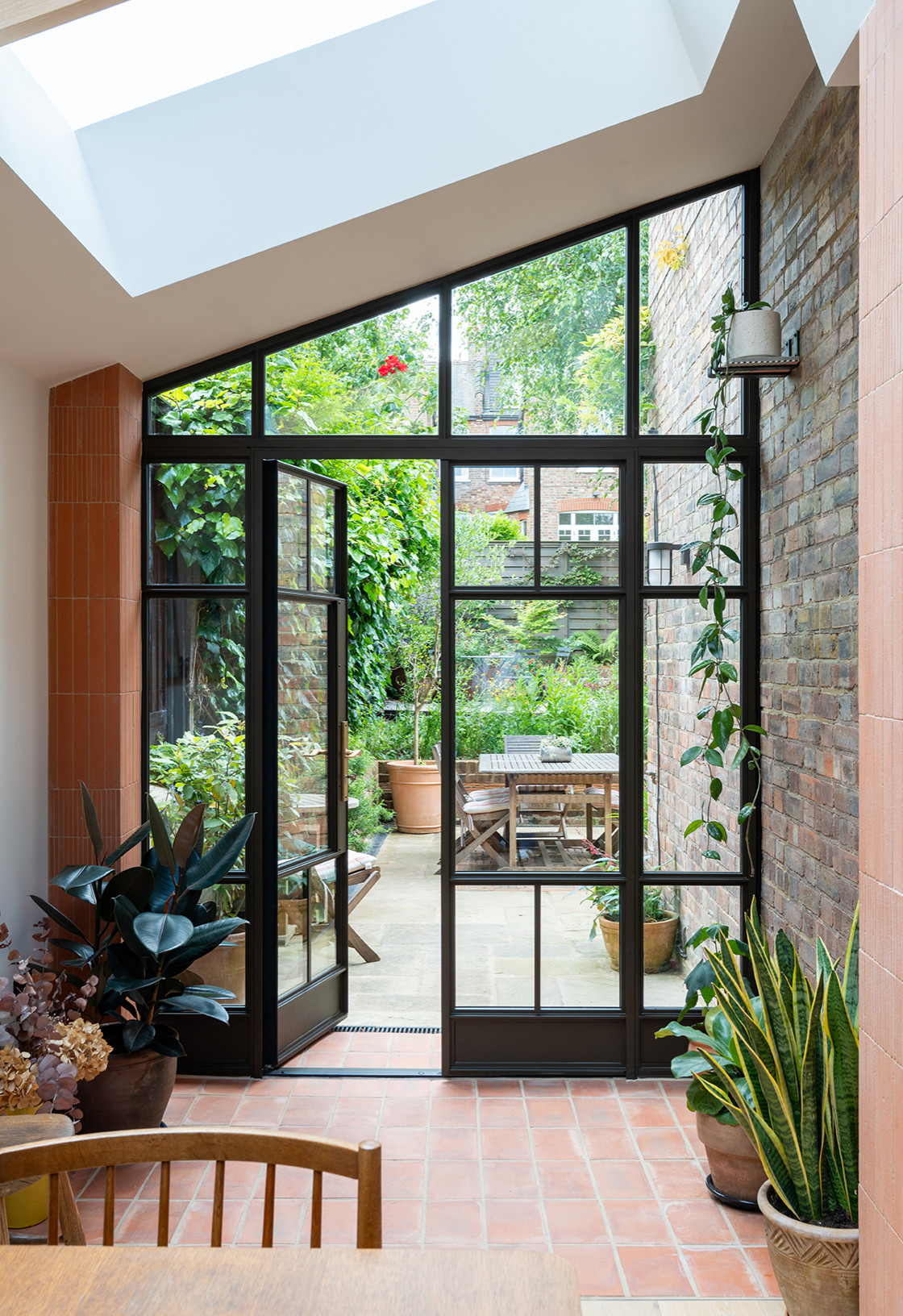 “We took inspiration from the timber doors and did a stylised version, so [they echo the originals in] everything from the bottom pane being solid to there being some glazing bars, but not evenly spaced,” she says.