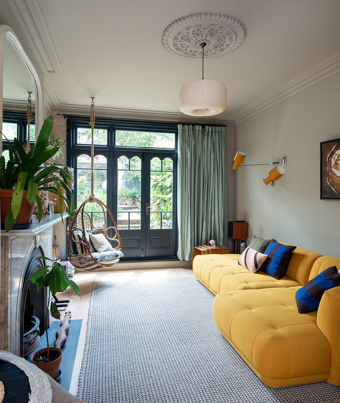 Johanna’s seemingly simple floor plan changes – removing the wall to extend left into the side return, then building the wall to the right to create a boot room that also helps to section off the living area at the rear – have changed the flow and created a practical and cosy broken-plan space.