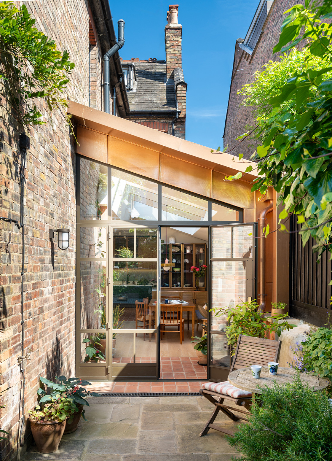 The extension frame and even the downpipe are copper, a request from the husband. “He wanted everything to have a sense of beauty to it as well as function,” Johanna says. “This copper won’t turn green – it’s treated to retain that beautiful, jewel-like quality.”