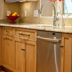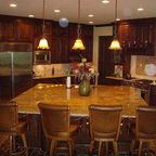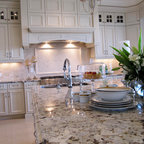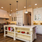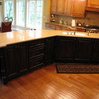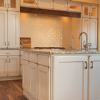 #1616 White Birch Cabinets: Driftwood Grey Stain & White Painted Island