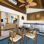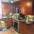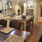 Very similar layout (Island in the middle with stove behind and centered, refrigerator to the right. Love how the room is framed too.
