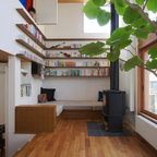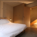 Construct storage wherever you can. Rebecca Leivars of Leivars advises us to create storage on any wall surface available: “If something has a thickness to it, make it storage. If you’re constructing a stud (non-load-bearing) wall, think about whether it can house storage. Can a section pull out to house shoes, perhaps? Can anything you design lift up?”