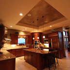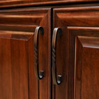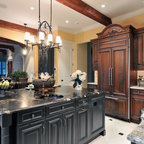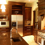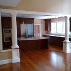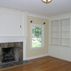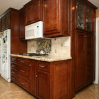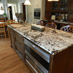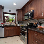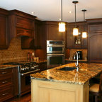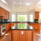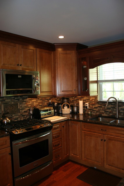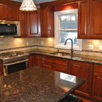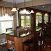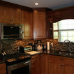 Honey colored cabinets and granite countertops pair nicely in this older colonial. Slightly darker trim and cabinets create a subtle accent.