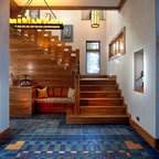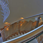 LOVE the plexiglass and the metal railing contrasted with the wood. wow!