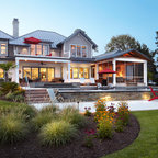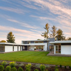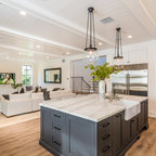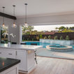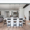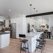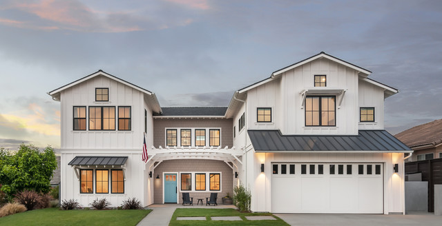 This was originally a 1960's one-story home. sk7 was hired to transform the mid-century home into a two-story modern farmhouse. The five bedroom, four and a half bathroom home offers a beautiful main entry complimented by vaulted ceilings, gorgeous staircase, lots of day light and a catwalk leading across to the master suite. The design provides spacious bedrooms, and bathrooms, custom details and architectural elements, an open living/ dining/ kitchen concept, a 20' fold-away door opening to the pool area and outdoor living area. The home is approximately 3,000 s.f. and provides a healthy balance of openness with coziness.