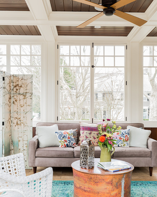 Sunroom tongue and groove ceiling in sunroom