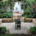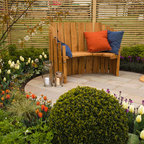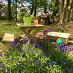 unique chair/table design to place outside in a garden (different stain would be better)