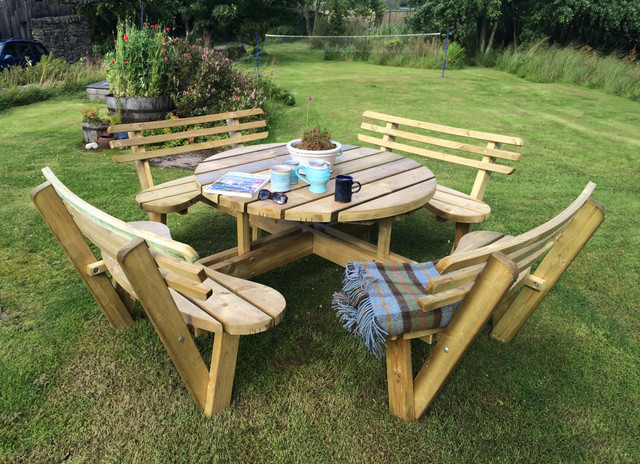 Circular picnic table with backrests
