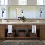 Like the rustic feel of both the cabinets and the floor, Also like the low profile vessel sinks.