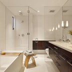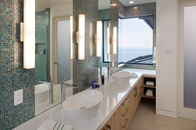 de este me gustan los lavamanos y la griferia y la idea de las luces y el mosaico