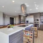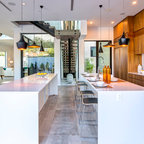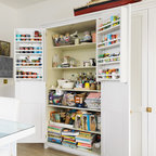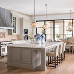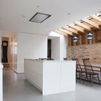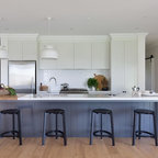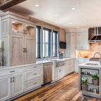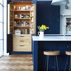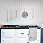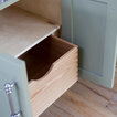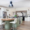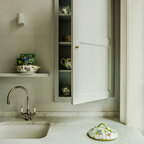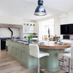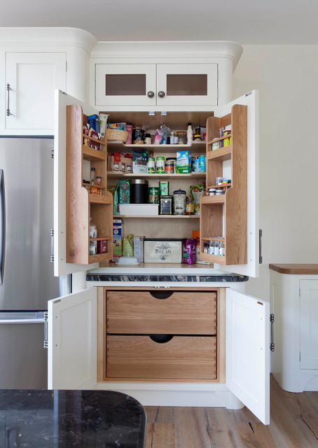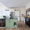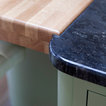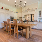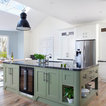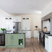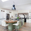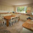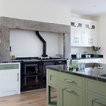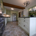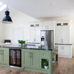 This classic inframe kitchen has been designed for a renovated family home. Bespoke 30mm in-frame cabinetry has been handpainted in specially mixed Gardenia with contrasting island and accent drawers in Farrow & Ball Olive. Work surfaces are 40mm Cosmic granite work surfaces with an 80mm American oak breakfast bar. Specially selected hand forged pewter handles finish the look beautifully. Images Infinity Media