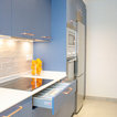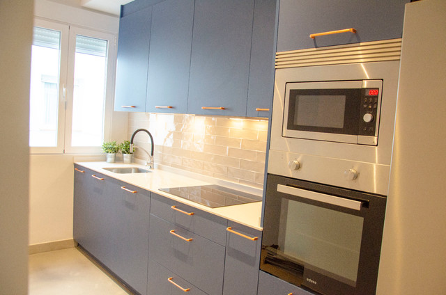 ¿Cual es el color de moda de la cocina? Descubre esta cocina azul con tiradores en cobre y el casco en roble. Tenemos vídeo del proyecto: https://www.youtube.com/watch?v=q0x1TZ9NpcY&