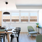 Colocación mesa frente a la cocina. No hay necesidad de una isla teniendo la mesa