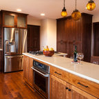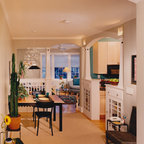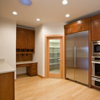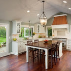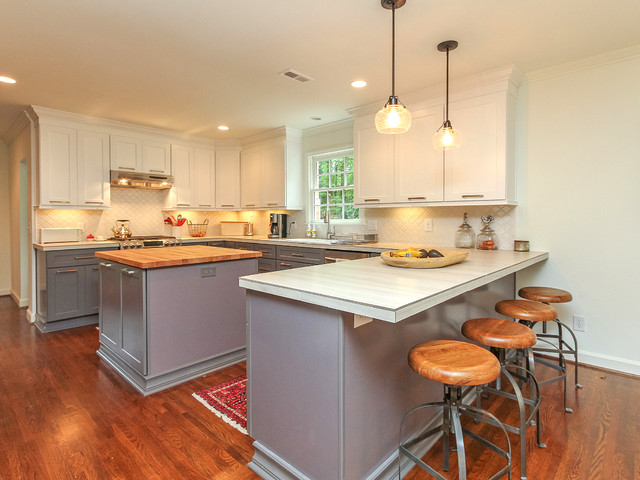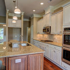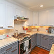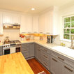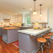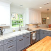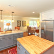 Updated kitchen with a more open floor plan, complementary cabinetry colors for the uppers and lowers.