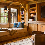 Love the old-fashioned Christmas tree, the soft lighting The arches between the rooms (so charming!) the wood floor, the colors