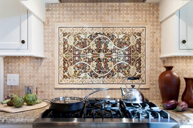 A beautiful decorative tile mural over the gas range. Photos by Chrissy Racho