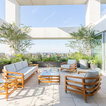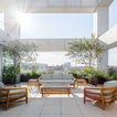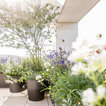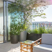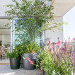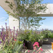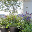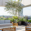 The terrace is a continuation of this modern and minimalistic apartment and is used as an entertainment space for the family and friends. We wanted to frame the stunning view of London by using mutlistem amelanchier trees placed on the corners of the terrace. We also used a great number of perennials on the long and narrow planters to create interest throughout the year.