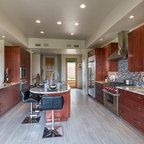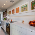 Full kitchen remodel which involved removing the wall between the dining room and kitchen. The was converted into a bar top with seating on the dining room side. The wood floors in the kitchen were installed to match the existing wood floors in the rest of the house. The cabinets are Diamond in white paint in a shaker style door. The counters are from Discover Marble & Granite in Absolute Black. The backsplash is a subway pattern of carrea marble 2 x 4 tiles which is highlighted by undercabinet lighting. The main features of the kitchen are the separate wet bar area with a flat screen tv in the backspalsh area, a small bar sink, wine fridge and beverage center flanked by two pantry cabinets and glass doors above. There was also an island added in the center that has a built in microwave. The gas cooktop has a convection oven below and a downdraft system behind it. This kitchen was designed and installed by Torrington Lowe's.