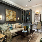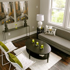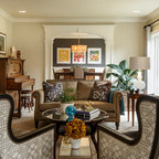 The furniture, lighting fixtures and shades were selected by the designer Kara Childress and her client.