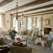 The dark wood exposed wood beams are original and were salvaged from France.