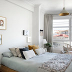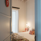 Se trata de un dormitorio de tamaño longitudinal donde se ha situado la zona de noche en un lado y el vestidor en el otro; cada área con entrada de luz natural. “Buscamos elementos que aportaran calidez como la madera. También destacan los textiles: queríamos que envolvieran el conjunto dándole un toque romántico”