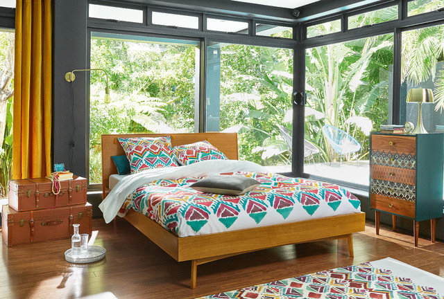 I like: - the bold yellow curtains - the corner doors! - the simple bed frame