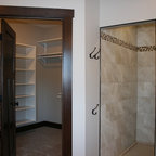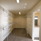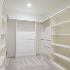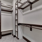 Love how the hanging clothes closet overhangs the clothes, avoiding dust to a large degree. May even be beneficial to have doors of some sort to avoid dust altogether—like: sliders, curtains, accordion, or doors with a glass center (probably my fav) or any other I might think of.