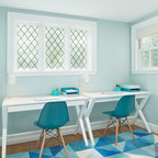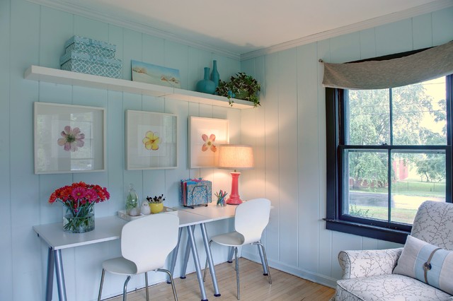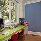 “Homework Studio" This room, right off the main living area, works as a combined homework and crafts space for tweens and teens. Lots of storage and a cozy spot to sit and read.