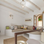 If you don't like the idea of white furniture, we could paint it some soft pastel for example this old fold away desk - also a possibility for the second bedroom/study and if needs be in dining room