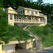 A 13,000 sq. ft. uphill lot, accessed by an elevator and bridge from the garage.