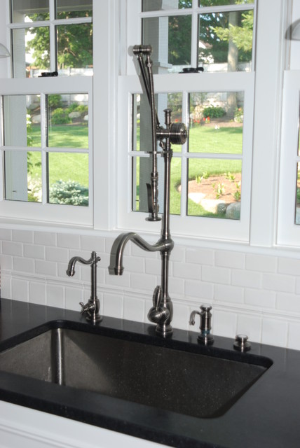 All faucetry seen in this kitchen remodel are from the Waterstone Annapolis Suite Collection which can be found at http://www.qualitybath.com/brand_Nav.asp?brandIDs=26&sortSelect=NameA-Z&ProdPerPage=96