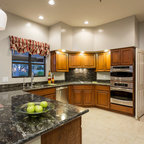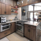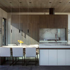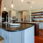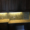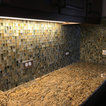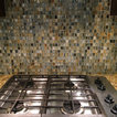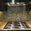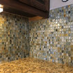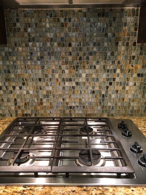 Custom Surface Solutions (www.css-tile.com) - Owner Craig Thompson (512) 430-1215. This project shows a paper faced translucent glass tile backsplash with an interlocking trapezoid shape pattern.