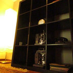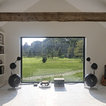 De där högtalarna är riktigt gräsliga, annars gillar jag hela rummet och det stora fönstret med vinyl mitt i allt!