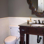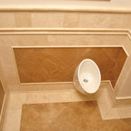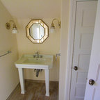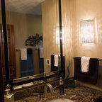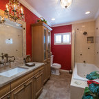We utilized a Moroccan inspired mirror to accentuate and play with the unusual slanted roof line. By adding clean lines and ample drawers for storage, we were able to transform this outdated bathroom into a true modern master retreat.
