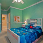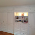 Antiqued mirror fronts on built in cabinets. Attic remodel