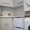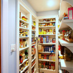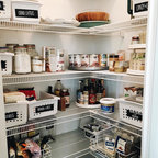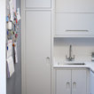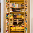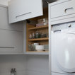 The walk in pantry was fitted into a bricked up recess previously occupied by a range. U-shaped shelves and larder racks mean there is plenty of storage for food meaning none needs to be stored in the kitchen cabinets. Strip LED lighting illuminates the interior.