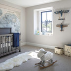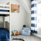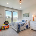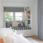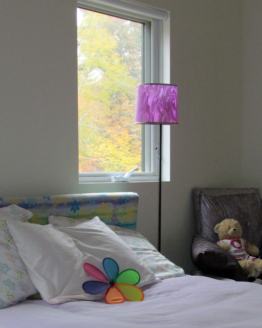 Finishing the windows with sheetrock corners rather than traditional wood trim give this farmhouse a clean modern style.